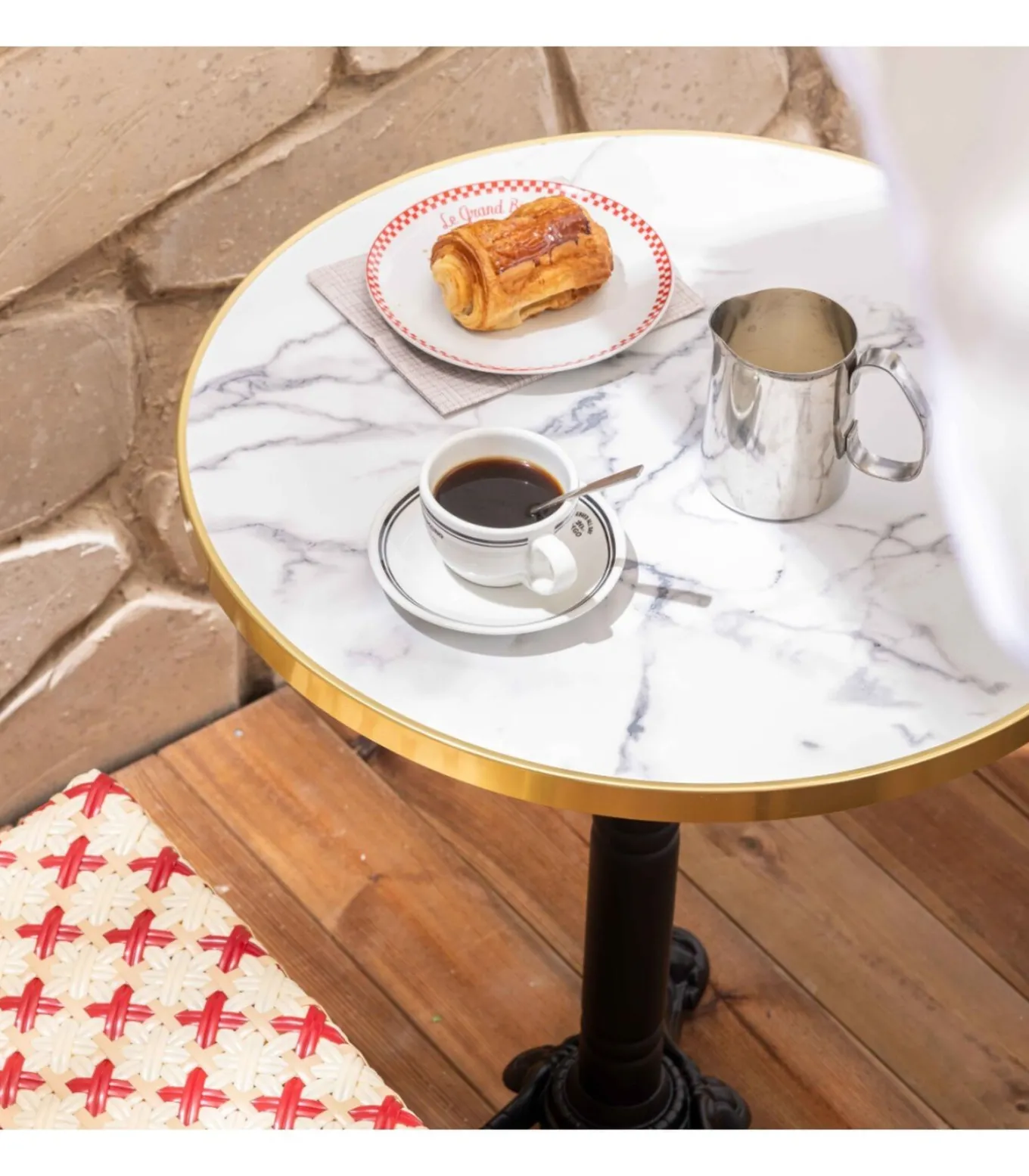 Breng een vleugje Parijse charme naar uw terras of tuin met onze vierkante tuintafelset van multiplex en de twee stoelen in bistrostijl. De tafel, met een verfijnd ontwerp, heeft een blad met een diameter van 60 cm, gemaakt van hoogwaardig multiplex met een laminaatbekleding met marmereffect, versterkt door een elegante gouden aluminium rand. Met een dikte van 2,5 cm combineert dit dienblad stijl en robuustheid, ideaal voor intensief gebruik. De tafelpoot, uitgevoerd in gietijzer, is ontworpen met een kantelsysteem waardoor je de positie van de tafel eenvoudig kunt aanpassen, terwijl een hoogte van 72 cm gegarandeerd wordt voor optimaal gebruiksgemak. De basis van 41,5 x 37 cm en de kolom van D.60 x H.55 mm, aangevuld met een bovenkruis van 45 x 45 cm, zorgen voor een uitstekende stabiliteit op alle oppervlakken, terwijl u met de 4 verstelbare voetpunten de hoogte kunt aanpassen volgens uw behoeften. De stoelen, trouw aan de Parijse bistrostijl, vormen een perfecte aanvulling op deze tafel. Met hun coating met houteffect en hun aluminiumstructuur (buizen van 28 x 1,5 mm en 24 x 1,2 mm) zijn ze zowel licht als resistent. Met afmetingen H.82 x D.60 x B.57 cm bieden ze een comfortabele zithoogte van 45 cm, met een rugleuning van 37 cm, wat een uitstekend comfort garandeert voor uw maaltijden of momenten van ontspanning. Deze set is ideaal voor professionals die op zoek zijn naar sfeervol en praktisch meubilair, geschikt voor intensief gebruik. Of het nu voor een café, een restaurant of gewoon om uw terras te verfraaien is, deze tafel en stoelenset combineert functionaliteit en esthetiek en creëert een warme en vriendelijke sfeer. Geniet van de Parijse bistrostijl en zorg tegelijkertijd voor de duurzaamheid en functionaliteit die nodig is voor uw buitenruimtes.
