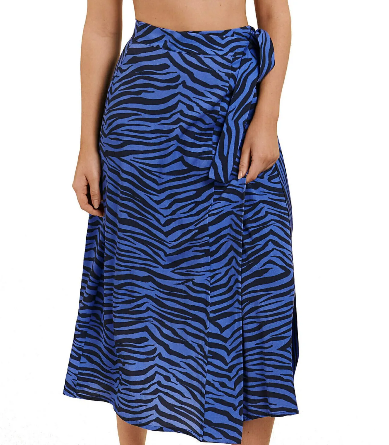 Zomerse wikkelrok, midi lengte, hoge taille met een brede band aan de voorzijde. Klepsluiting aan de voorkant met bandjepje. Ingenaaide drukknopen aan de binnenkant van de tailleband zorgen voor een precieze pasvorm. Lengte ca. 85 cm. Gemaakt van zachte viscose voor ultiem comfort. Op het strand of aan de bar, bij het zwembad of in de stad, dit kledingstuk zal perfect zijn door zijn multifunctionaliteit. Met een gedurfde tweekleurige dierenprint in een frisse, jeugdige stijl, is het gemakkelijk te dragen, veelzijdig en buiten het seizoen, ideaal voor zowel strandlooks als dagelijks gebruik.[Rok wordt apart verkocht. Zwemkleding, schoenen, sieraden en andere accessoires die het model op de foto’s draagt, zijn niet inbegrepen].