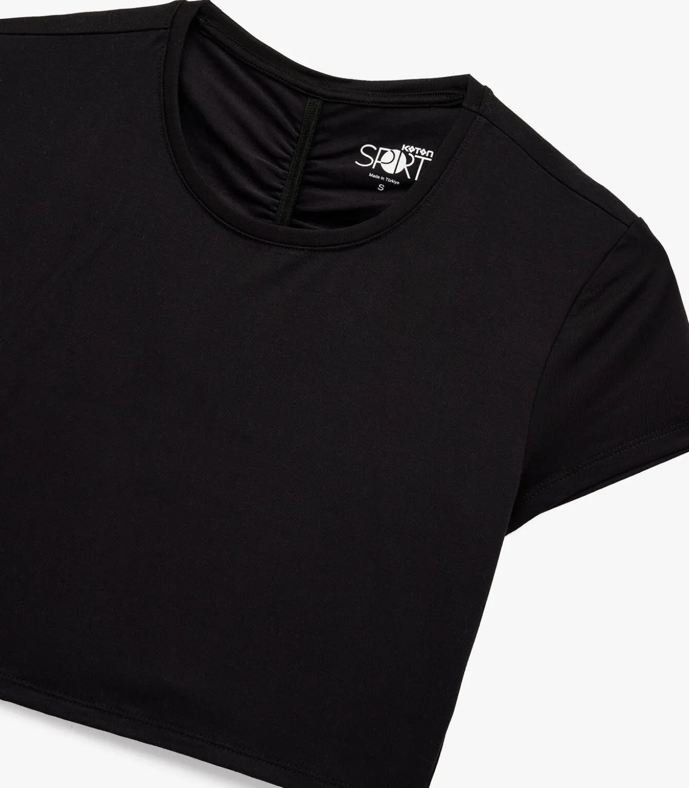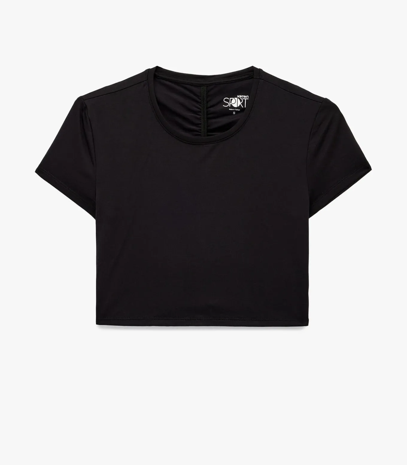 Deze zwarte crop top met korte mouwen combineert stijl en functionaliteit. Het shirt is ontworpen met een slanke pasvorm die je figuur accentueert. De ronde hals en stijlvolle rimpeldetails op de achterkant geven een moderne uitstraling, ideaal voor sportieve activiteiten of dagelijkse casual outfits. Geniet van het comfort en de bewegingsvrijheid die deze veelzijdige top biedt.