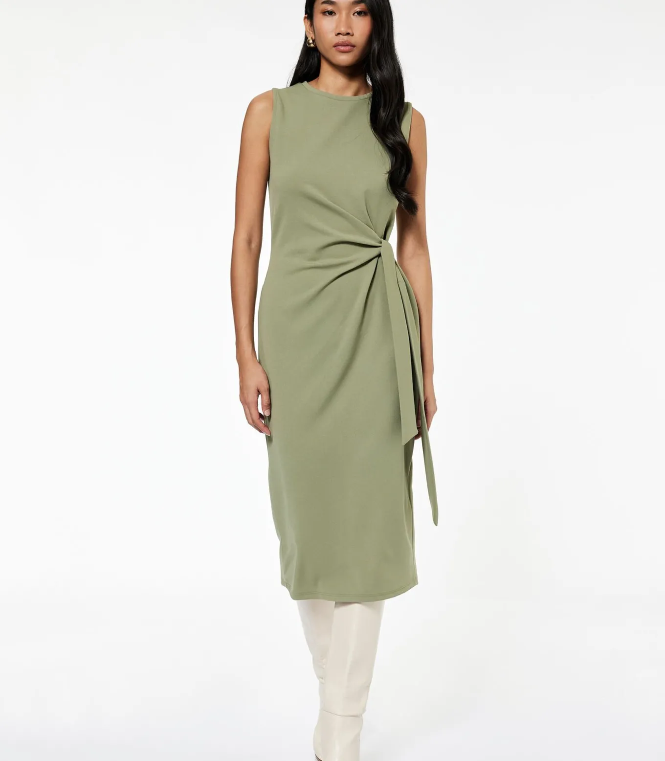 Deze elegante zwarte midi–jurk biedt een moderne en verfijnde look. Het mouwloze ontwerp en de ronde hals zorgen voor een frisse uitstraling, terwijl de ceintuur aan de zijkant een vrouwelijke touch geeft. Perfect voor zowel dagelijkse als speciale gelegenheden, en gemakkelijk te stylen met hakken voor een avondje uit of met laarzen voor een meer casual look. Ontdek de veelzijdige elegantie die deze jurk aan je garderobe toevoegt!